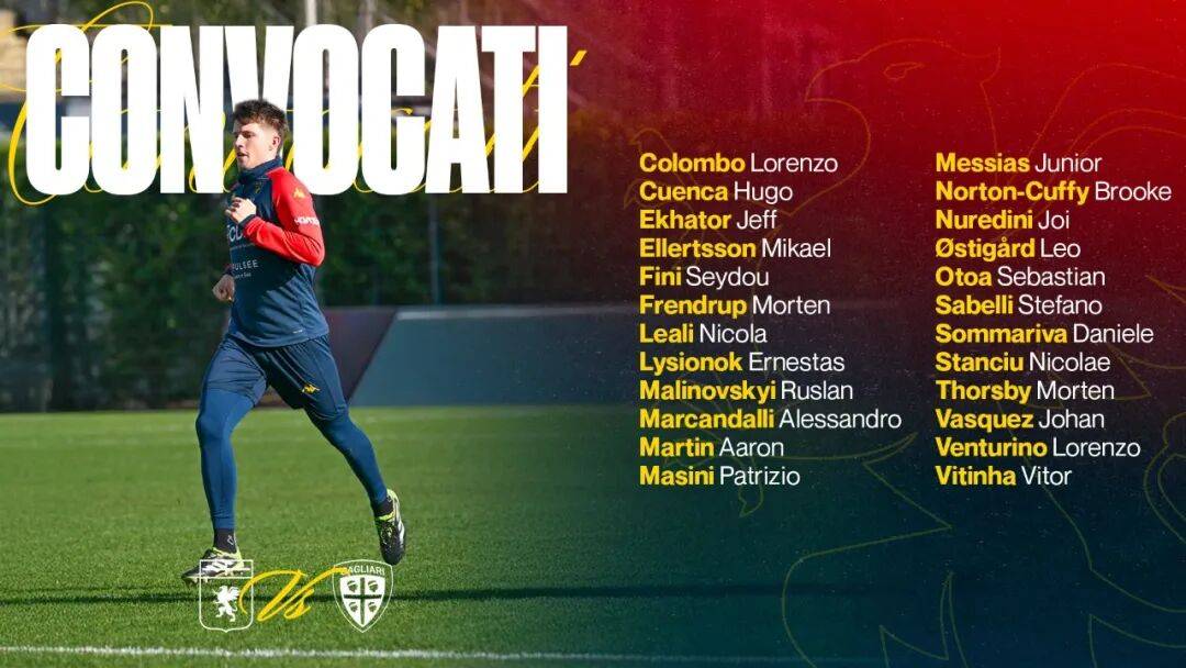 德罗西赛前表示现在的热那亚很难被击败,但需要提高胜率,球队的表现越来越好,尤其是和AC米兰的上半场。梅西亚斯本场复出,但将从替补席开始,首发阵容和在圣西罗球场时一样。射失点球的中超名宿斯坦丘和家人遭遇了死亡威胁,他将前往老板Dan Sucu旗下的另一支球队布加勒斯特快速。从雷恩租借的格隆巴克表现平平将返回法甲球队,19岁的Lorenzo Venturino已经被蒙扎总监布尔迪索捷足先登,他和好友德罗西为此已经共进晚餐。利雅得胜利门将本托即将加盟,转会费预计450万欧元。奥纳纳还在参加非洲杯,Maxwel Cornet和Caleb Ekuban因伤缺席。
